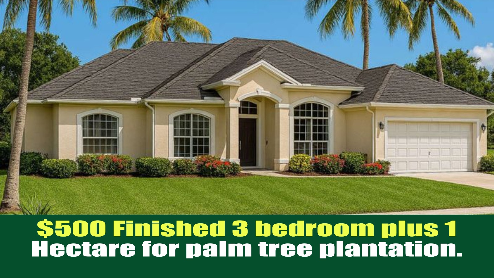 Land worth $5,000 plus a solar system worth $500 and construction of your 2 bedroom or 3 bedroom house based on your package at that time will commence immediately.